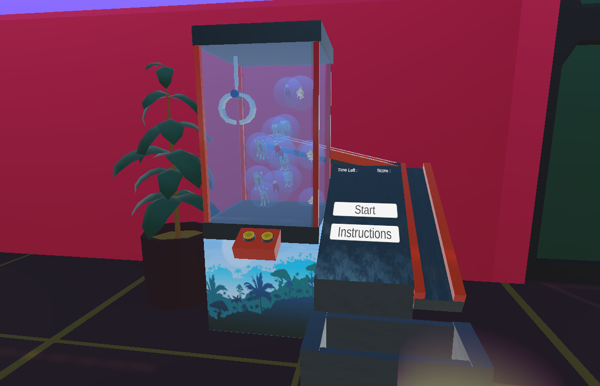 Note: Currently, both the Skee-Ball and Grabbing Machine games are configured to use English sentences and questions in order to showcase the quiz and point mechanics. In a more fleshed-out version, all of the games would be populated by questions of whatever language the player was learning, and the questions would change depending on the selected module.