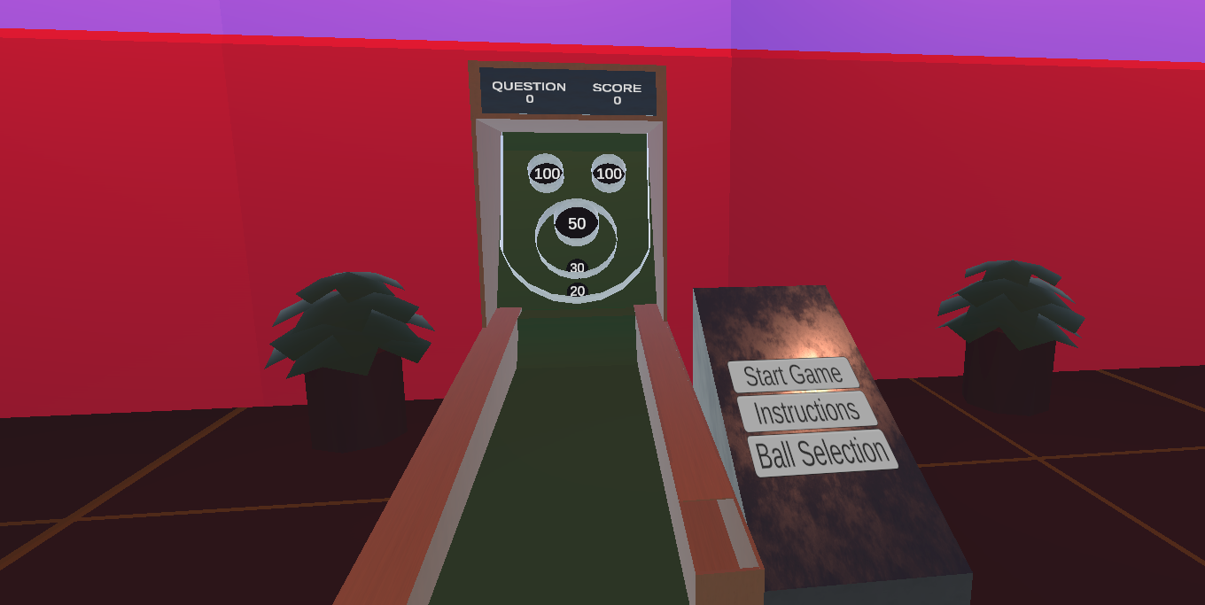 Doing so incorrectly will simply proceed to the next question, but answering correctly will provide a ball for the player and allow them to roll it down the table in an attempt to get points.