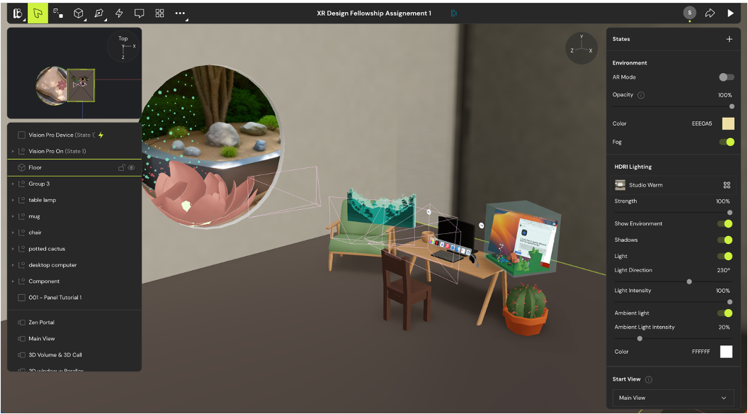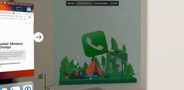 Objective: The goal was to create a draft of a VisionOS prototype, applying spatial design principles, design process, and tools. I specifically wanted to explore the panels / volumes / shared space approach of Apple's VisionOS.