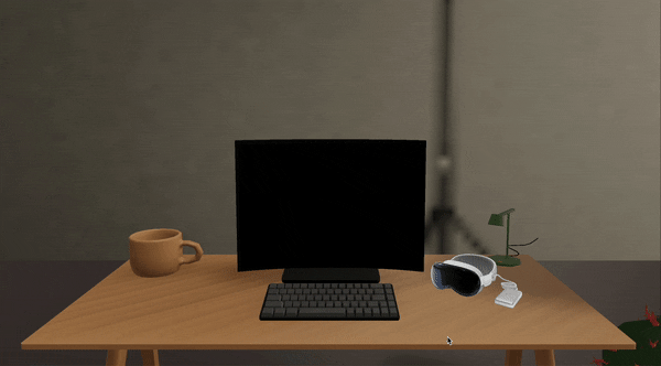 - Experience starts : no indication only a glowing signifier on the headset, to simulate wearing it to activate the "spatial computing"