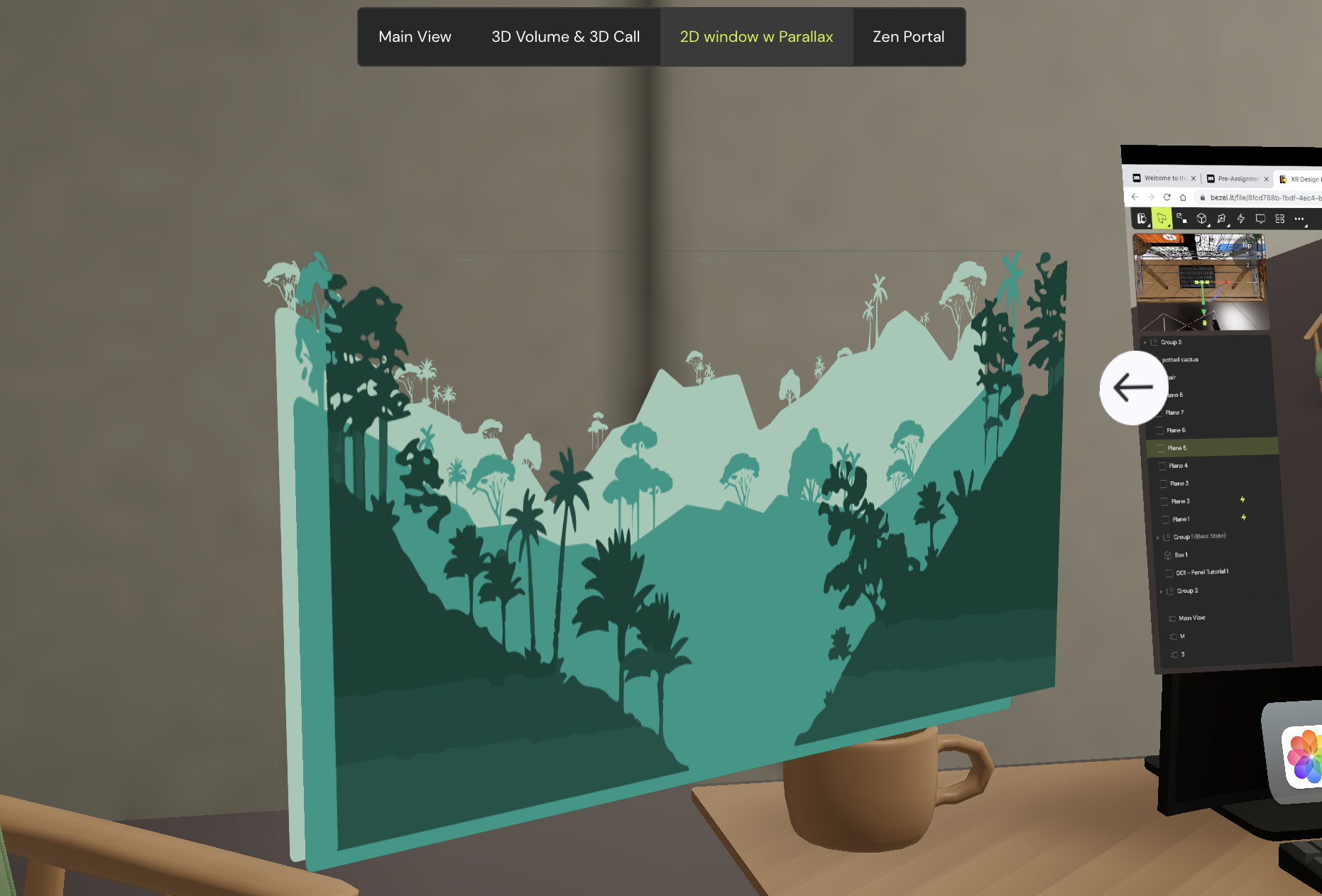 - Parallax 3D Flat Elements: The design included parallax 3D flat elements, creating a visually interesting and immersive experience, allowing to easily understand how to 3Dfy (turn into 3D) existing 2D experiences by adding depth between layers